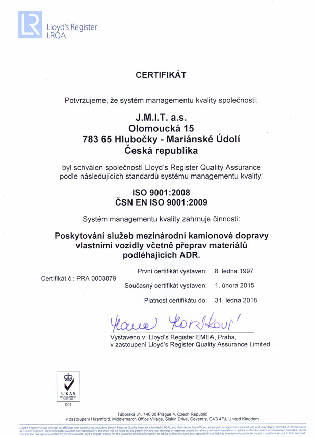 Im vorigen Jahr absolvierten wir erfolgreich den Audit TAPA für den Transport von Waren mit einem hohen Wert und den Audit CAA für den Transport von Luftsendungen. Anfang des Jahres 2015 verteidigten wir erfolgreich die Politik der Qualität und das Zertifikat ISO 9001.